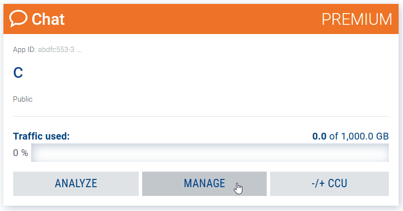 Step 3: Go to your Public Cloud or Premium Cloud apps and click on “Manage” in your application box.
