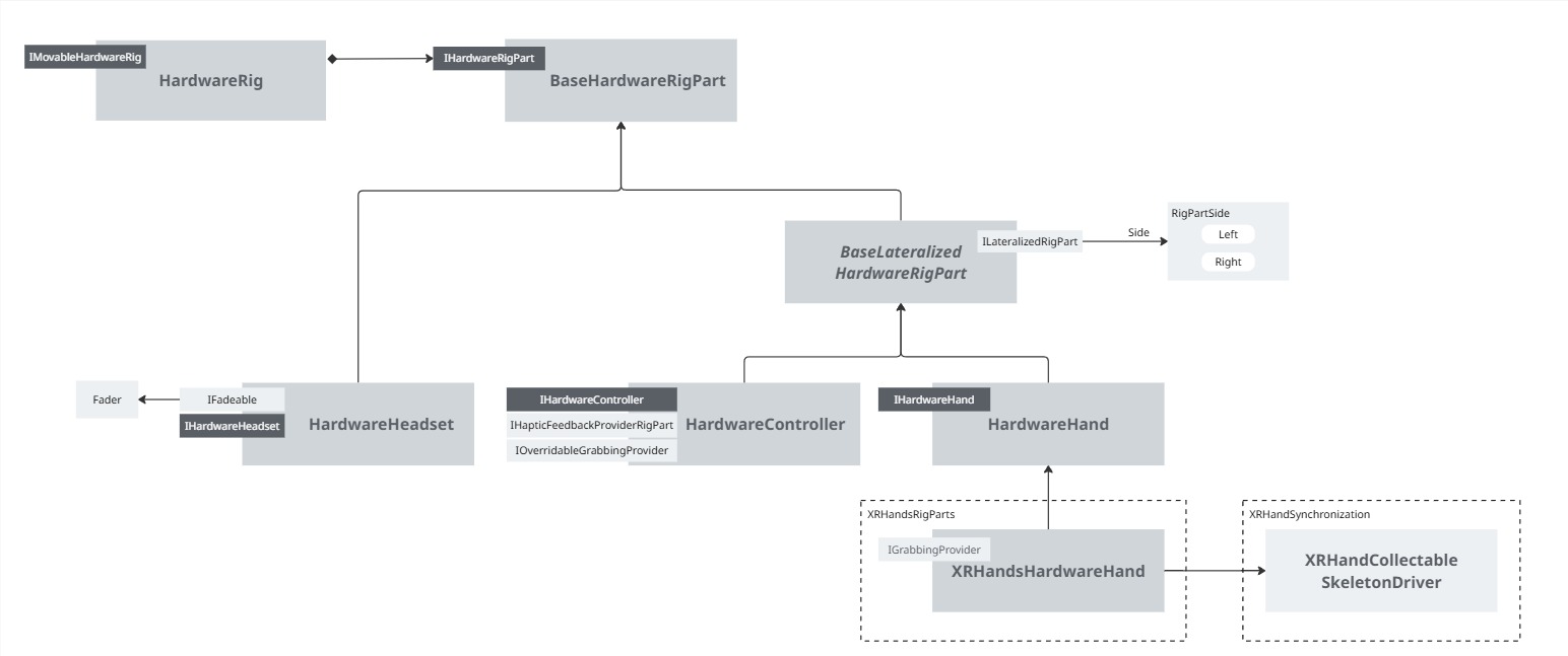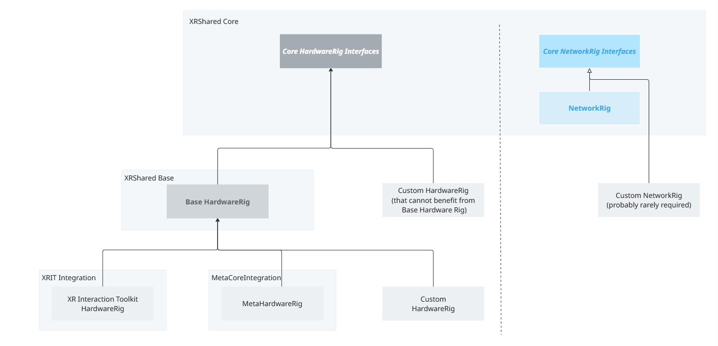 The XRShared Core module describes the basic interfaces for the hardware rig and the network rig.