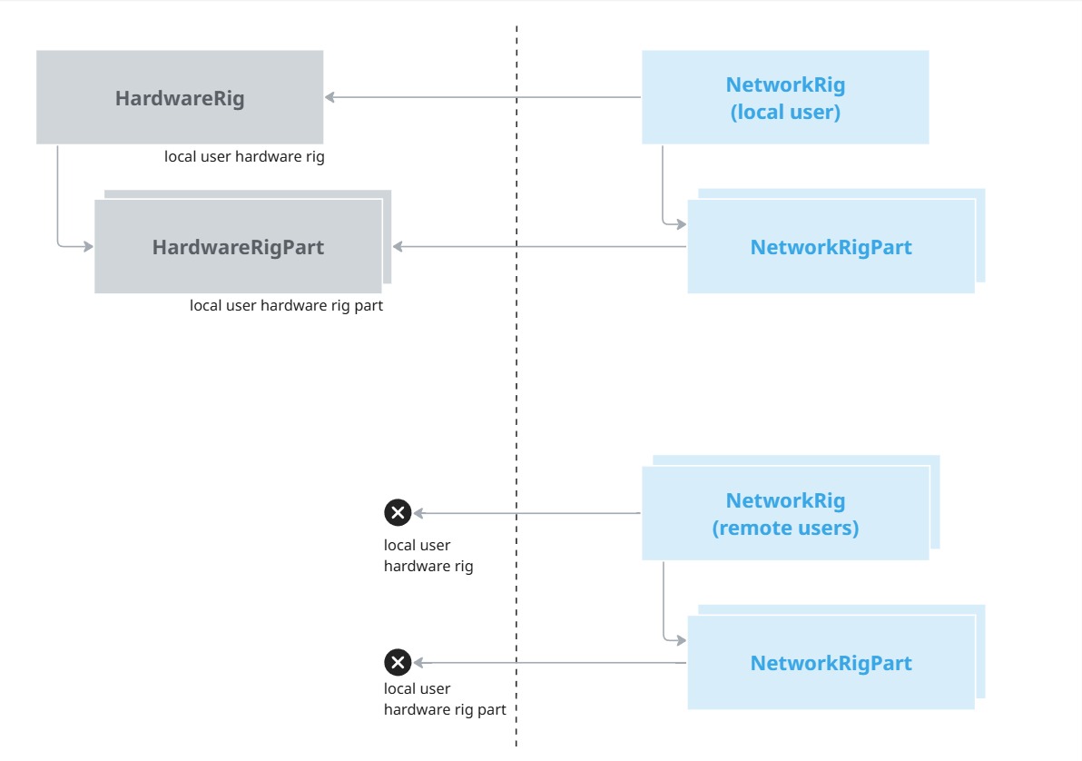 The local user hardware rig registers in a HardwareRigRegistry, so that the NetworkRig can find it.