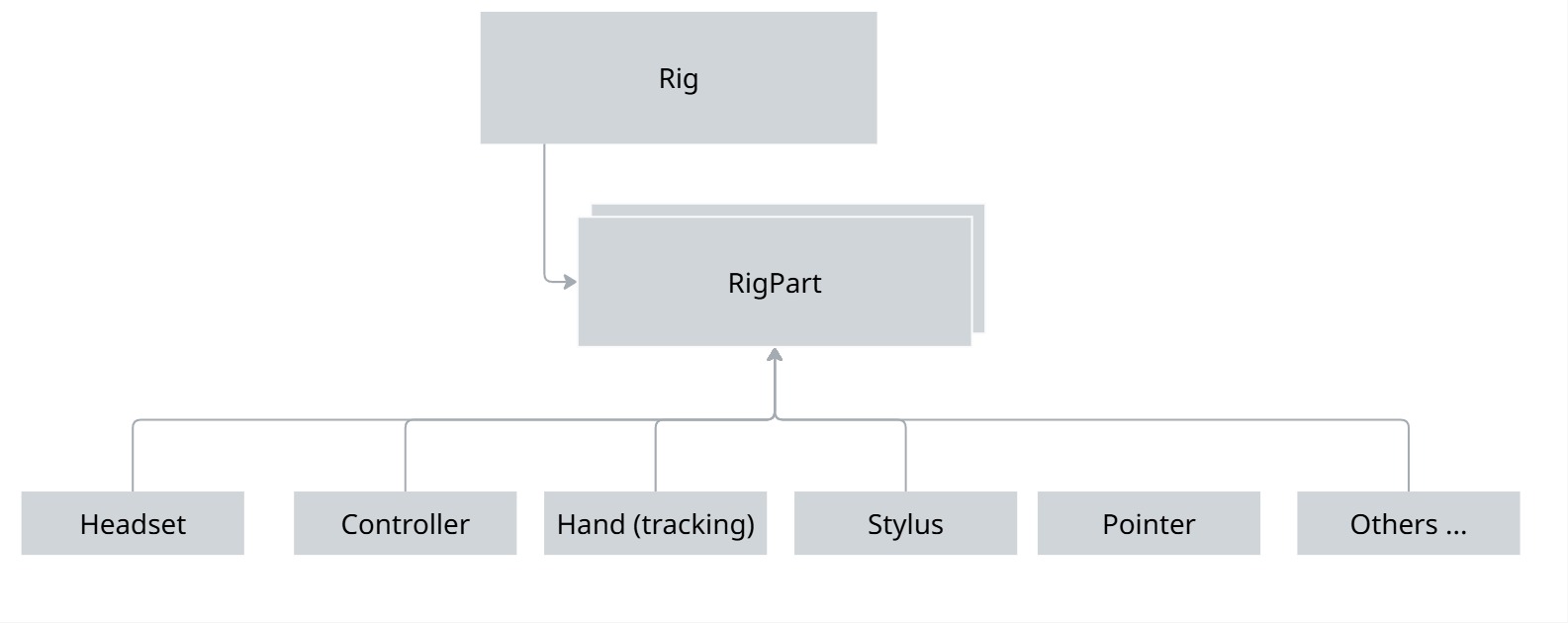 A rig part can be anything whose position needs to be tracked: a controller, the headset, a finger-tracked hand, a spatialized pen, an eye-tracking pointer, ...